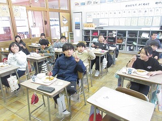 今日の給食は、多くの子どもたちが大好きなカレーライスでした。子どもたちに「好きな給食」を尋ねると、カレーライスは必ず1位か2位に上がってきます。今日の給食の献立は、牛乳・チキンカツカレーライス・福神漬け・フルーツポンチでした。大きなチキンカツの乗ったいつもより豪華なカレーだったので、みんな「美味しい、美味しい」と言って喜んで食べていました。カレーライスの提供は、月におよそ1回となっていますので、6年生が小学校で食べるカレーライスは、3月に最後の1回となります。今年度の給食も残り23回となりました。これからも給食をしっかり食べて、丈夫な体をつくりましょう。給食調理員さんも、最近、残食が少なくなったことをとても喜んでいます。