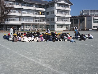 昼休み、今年度3回目の避難訓練を実施しました。5月は火災、前回9月は大地震、今回は休み時間中に緊急地震速報や校内放送を聞いて行動に移す訓練でした。運動場で遊んでいた子どもたちは中央に集まって低い姿勢で身を守り、教室にいた子どもたちは放送の言葉を聞いて机の下に身を隠した後、放送の言葉で運動場へ避難しました。また、第一次避難後に大津波を想定して、校舎4階まで移動する垂直避難も行いました。私からは、前回と同じように「いつ、どこで大地震が起こるか分からないこと」「静かに指示を聞き、落ち着いて行動することが大切」「先生の指示が無かっても行動できるようになってほしい」「上の学年の子が指示を出せるようになったら素晴らしい」という話をしました。