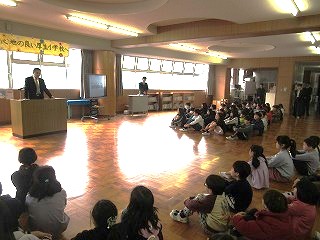 2限目、令和7年度の修了式を行いました。この1年間、どの学年の子どもたちも一生懸命勉強し、できることを増やしてきました。その頑張りとつけた力を評価して、1年生から5年生の全員に進級を認めることを伝えました。保護者の皆様、地域の皆様、1年間ありがとうございました。皆様の本校教育に対するご理解とご協力のおかげをもちまして、今年度を無事終えることができました。修了式後に、3月末をもって本校を離れられる職員の離任式を行いました。お世話になった年数は違いますが、それぞれの力を発揮され、本校の子どもたちのためにご尽力いただきました。本校を離れられる職員は、山本(康)先生、山口先生、小林先生、剱山先生、中山先生、栄養教諭の上村先生、事務職員の岡野さん、給食調理員の加島さん、ALTのアイビー先生、学習支援員の西堀さん、高山さん、押田さんです。子どもたちのために、学校のために、ありがとうございました。また、岡田先生と尾上先生が4月からお休みに入られます。最後に私、中村は、役職定年により、本年度をもって校長の職を解かれることとなりました。2年間ありがとうございました。