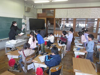 校舎内や運動場に子どもたちの元気な姿が戻ってきました。1限目に始業式を行い、校歌の後、私から「3学期は、『学年のまとめを行う大切な期間』『目標・志をもとう』」という話をしました。続いて、生徒指導担当から「冬休みが終わり、3学期が始まったことから、始業式の「始」という文字を用いて、新たな気持ちでスタートを切り、成長につなげよう」という話がありました。