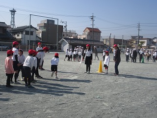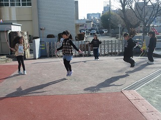 今日も温かい一日となり、子どもたちは元気よく運動場で体を動かしていました。各学年が体育でなわ跳び運動を行っていることもあり、子どもたちは休み時間も友だちと一緒になわ跳びを楽しんでいる子が多くいます。写真は、20分休みに、2年生と5年生の子どもたちがいろんな技にチャレンジしている様子です。もう1枚は4限目の様子で、1年生と6年生が合同体育を行って、長なわの八の字跳びにチャレンジしていました。長なわ大会が28日(水)に迫り、6年生が1年生に優しく接している様子は、この時期の運動場で見られるステキな光景です。
