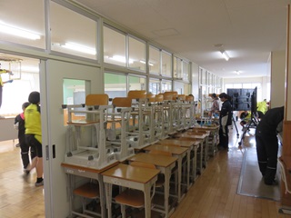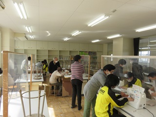2月24日(火)、卒業式を前にして、3年生が奉仕作業に取り組みました。教室をはじめ廊下の流し、下駄箱、給食の配膳台にいたるまで、普段の掃除ではできない場所まできれいに大掃除をしました。同時に、被服室では雑巾づくりを行いました。コミュニティスクールの皆さんも応援に来ていただき、ミシンの準備から縫い方まで丁寧にご指導いただきました。ありがとうございました。なお、この雑巾は卒業式前日のセレモニーで下級生に授与される予定です。