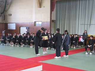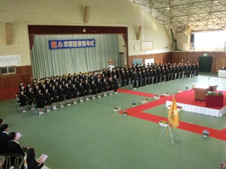 3月5日(木)、明日の卒業式へ向けて、予行練習を行いました。全校生徒が、心に残る式になるよう願いをこめて、真剣に取り組みました。
