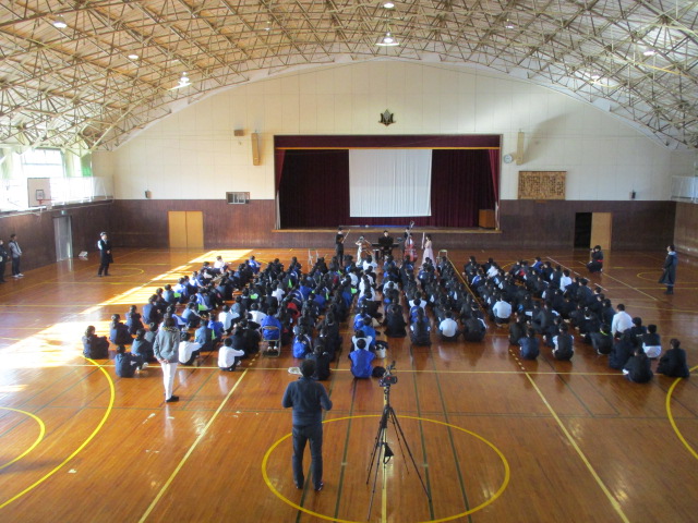 皆さんは、1月29日に外宮で演奏を奉納するため来市されており、「この機会に生徒たちに本物の音楽に触れてほしい」という願いから、本校にお声がけをいただきました。