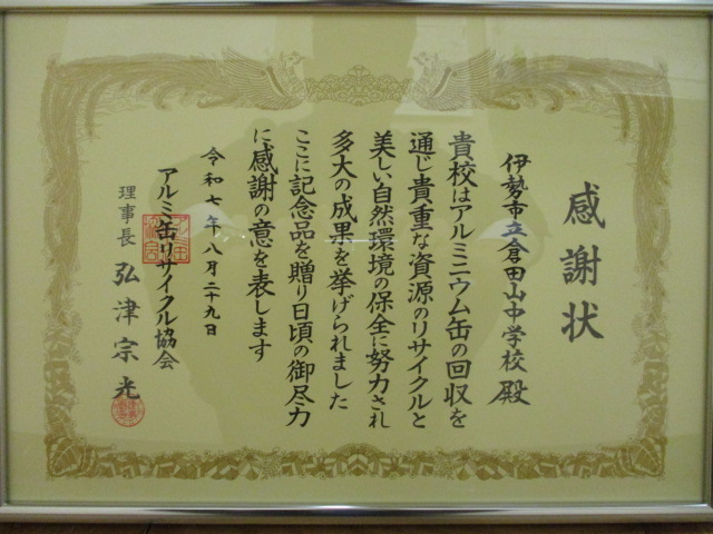 福祉委員会を中心に行っているアルミ缶回収の活動が、アルミ缶リサイクル協会から2017年、2021年に次いで優秀賞をいただきました。