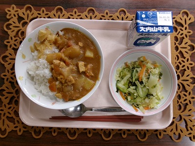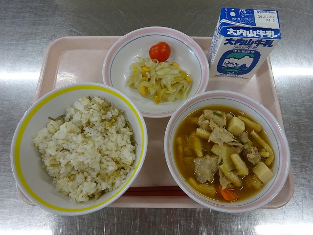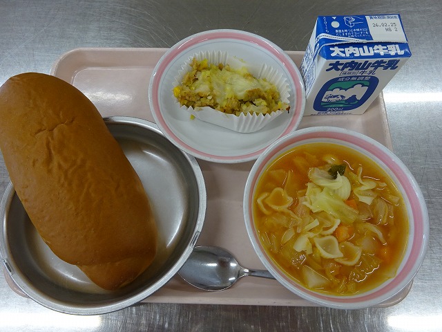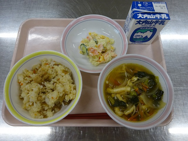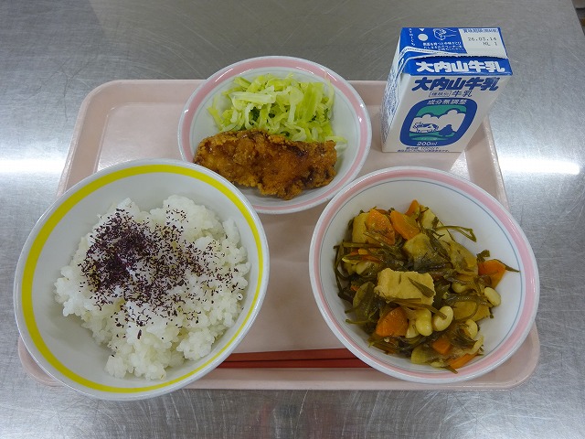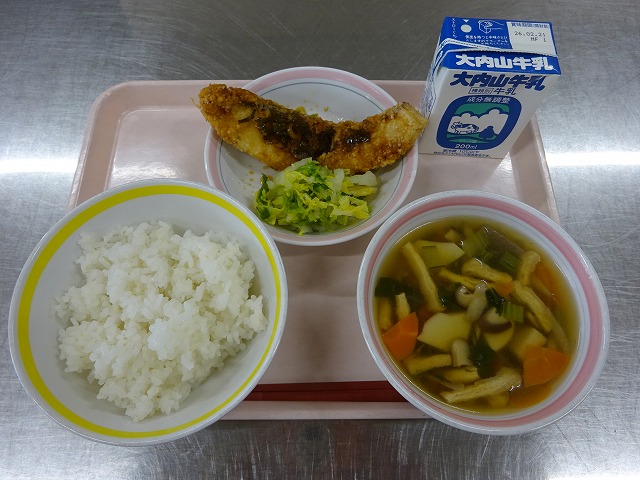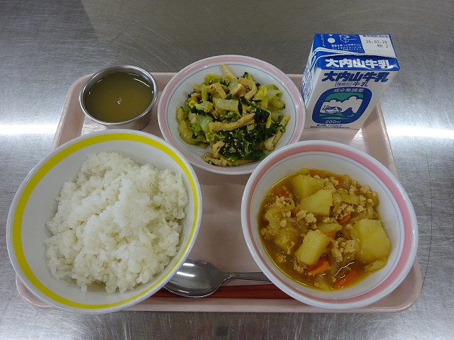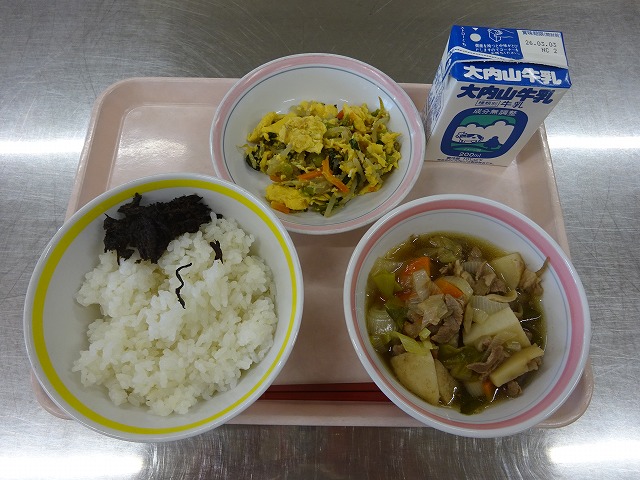 今日の給食は、「麦ごはん、牛乳、いも煮、卵と野菜の炒め物、しそひじきふりかけ」でした。 今日も6年生の考えてくれた料理を味わいました。「いも煮」は、山形県の郷土料理で有名ですが、各地域や家庭などで入れる食材や味付けにも違いがあるようです。「お母さんのふるさとの郷土料理を知ってほしいです。あたたかくておいしくておすすめです」と考えてくれました。今日は、里芋の他に、こんにゃくやまいたけ、ごぼうなどが入っていて、おいしかったです。「うどんを入れてもおいしそう」「家でも似た料理を食べるよ」「三重県の近くの料理かと思っていた」などという感想もありました。 6年生が考えてくれた料理でいろいろな話題が広がり、うれしく思います。 |
