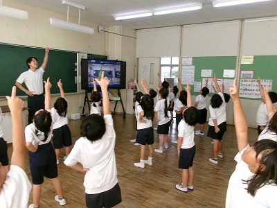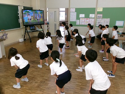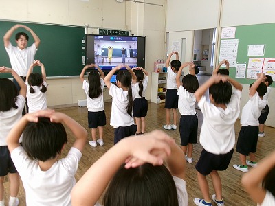 運動会の練習は、来週14日(火)から始まるのですが、1年生が小学校での初めての運動会に向けて、ダンスの練習を始めました。まだ教室で、クラスごとに動きを覚えている段階ですが、覚えの速い子が多くて感心しています。