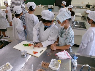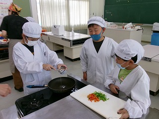 各班で役割を分担しながら、また作りながら同時に片づけをしながら、上手に作ることができました。最後にみんなで「いただきます!」をしました。今日はB組が実習をしましたが、A組も今週中にするそうです。