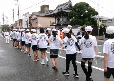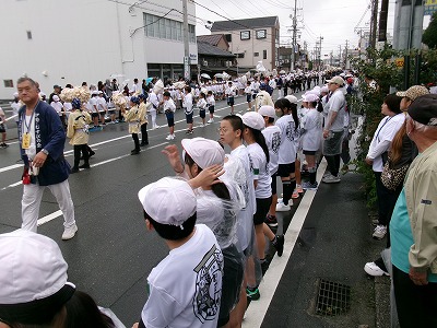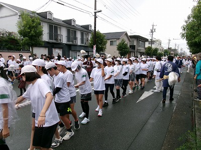4,5,6年生が、初穂曳に参加しました。今社で出発式を行い、10時すぎに奉曳車が出発しました。みんなで綱を持って、「エイヤ!エイヤ!」とかけ声に合わせながら綱を曳きました。