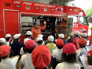 3年生が伊勢市消防本部へ見学に行きました。室内に入り、消防指令室や出動準備室などの様子を見せてもらいました。初めて知ったことが多かったようです。