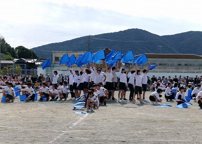 前日の雨も上がって、無事に運動会を実施することができました。子どもたちは、徒競走にダンス、低中高の団体種目に力いっぱいがんばっていました。