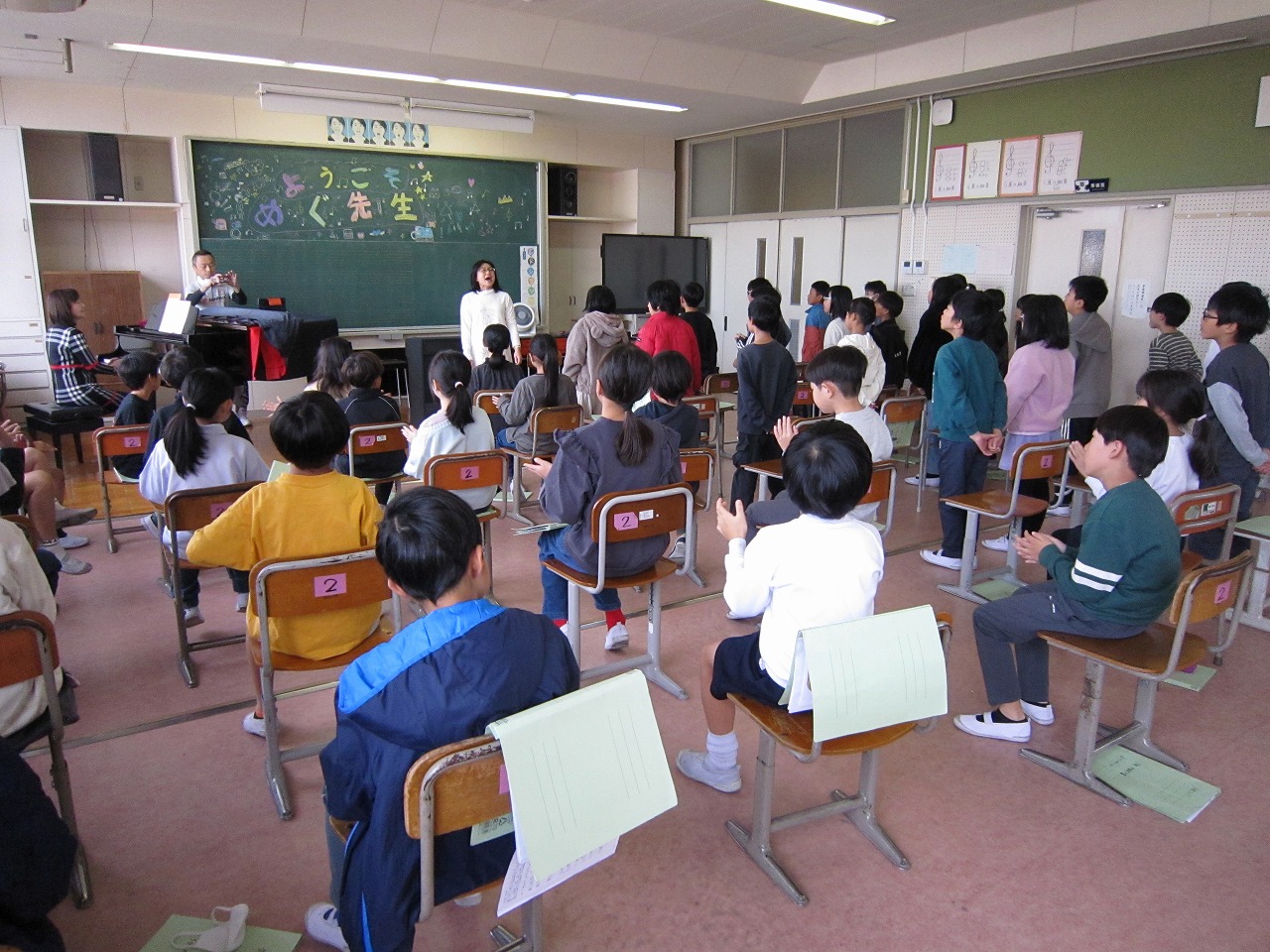 3年生が音楽の時間に、廣めぐみ先生の合唱指導を受けました。しっかり発声もできていて、元気よく歌えていました。また、指導の後半は、上手にはもって歌えたそうです。