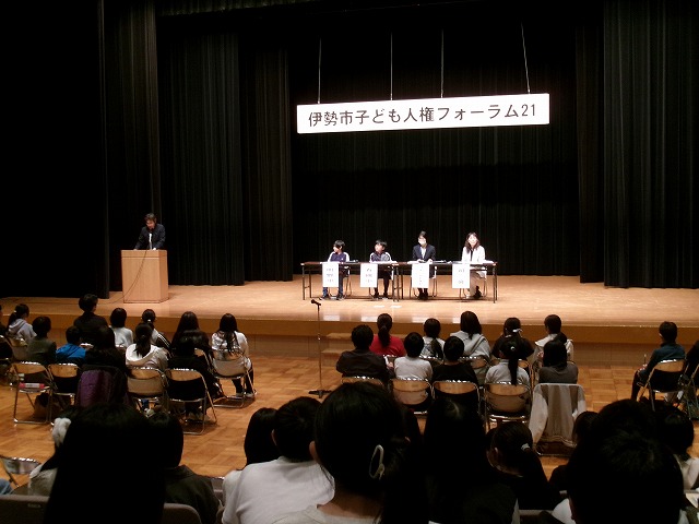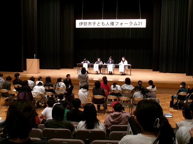 いせトピアで「伊勢市子ども人権フォーラム」があり、6年生の代表5人が参加してきました。市内の22小学校の代表者が集まり、そこで発表された人権作文について意見や感想を交流し、人権についての学習を深めました。