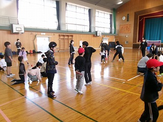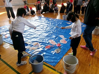 倉田山中学校区特別支援交流会がありました。倉中と有緝小の特別支援学級の子どもたちが来校し、本校のかがやき学級の子どもたちと交流をしました。開会式のあと、魚つりゲーム、パターゴルフ、ふうせんバレーをして楽しく過ごしました。