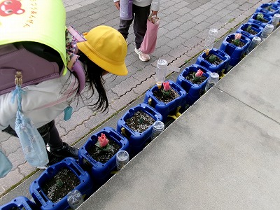 1年生が植えたチューリップが成長し、花を咲かせ始めました。早いもので3月も中旬に差し掛かり、春の気配をあちらこちらで感じられる頃となってきました。