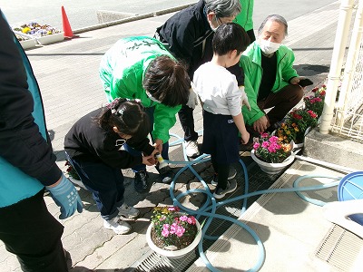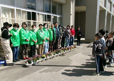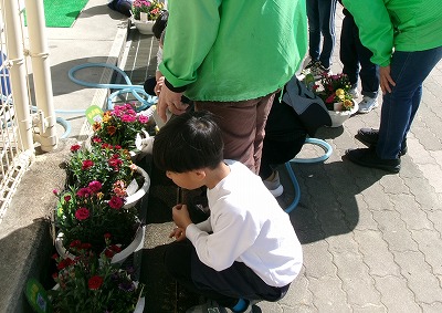 まちづくり協議会の方々にお越しいただき、かがやき学級の子どもたちが花いっぱい運動として、花の寄せ植え作業をしました。色鮮やかな花の寄せ植えが、校舎前の景色を華やかにしてくれました。