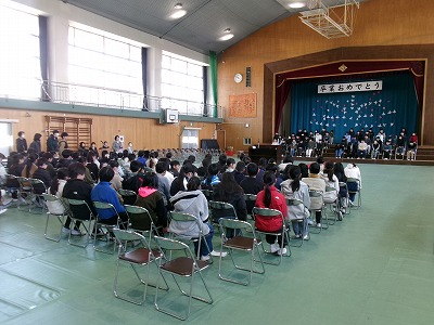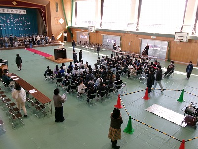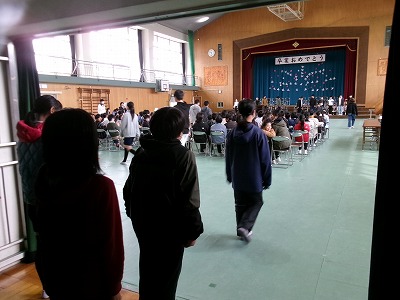 5年生全員が協力して、体育館にシートを敷いて、ひな壇や演台、いすや机を並べて卒業式の式場を作ってくれました。5年生のみなさん、よく働きました。ありがとう!