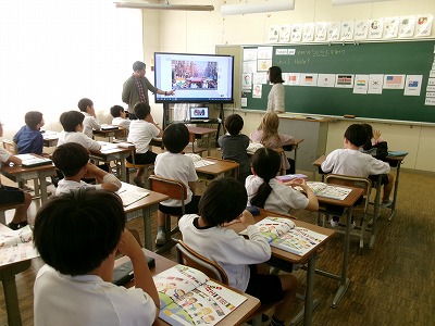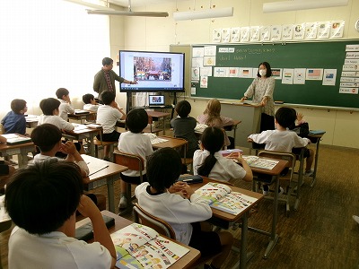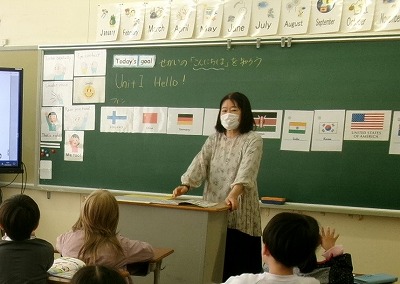 英語専科として今年度、野村恵子先生に来ていただいています。主に3〜6年生の外国語(英語)の授業を持ち、明倫小の英語教育の推進に取り組んでもらっています。教職員向けの研修会も計画中です。野村先生、よろしくお願いします。