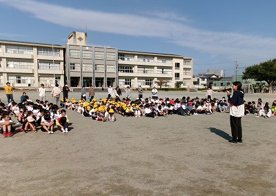 この運動は、横断歩道を渡るときに止まってくれている運転手さんに、「ありがとう」を言ったり、頭をさげたりしてお礼の気持ちを表すことで、歩行者も運転者も交通安全意識を高めることを目的としています。式では児童会の代表児童が「交通安全宣言」を読み上げてくれました。