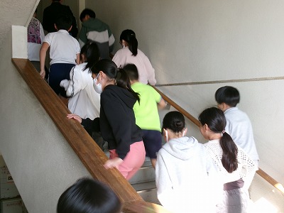 今年度2回目の避難訓練を行いました。今回は、事前予告なしでの実施です。昼休みにいきなり放送が流れて、訓練が始まりました。