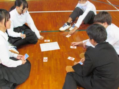 11月10日(月)6限目、三重県教育委員会事務局 学校防災アドバイザーの辻川 才太さんを講師に迎え、1年生の防災学習を行いました。「クロスロード」の手法を用いて意見交換を行うことにより、災害時の対応について考えました。