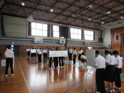 9月24日(水)5限目、後期生徒会本部役員の立会演説会・投票が行われました。立候補者は、立候補した理由やどのような学校にしたいかなど、自分の考えや思いを力強く語っていました。