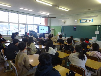 1限目にZOOMで終業式を行いました。最初に表彰を行い、続いて校長先生からのお話し、最後に生徒指導の先生からの冬休みの生活のお話を聞きました。お話にあった「三つのキ(危険、規則正しい、金)に気を付けて、冬休みを楽しんでください。1月8日に元気なみなさんに会えるのを楽しみにしています。