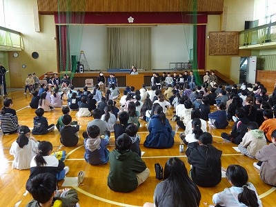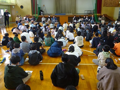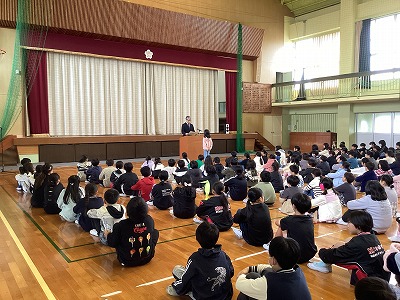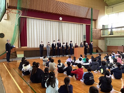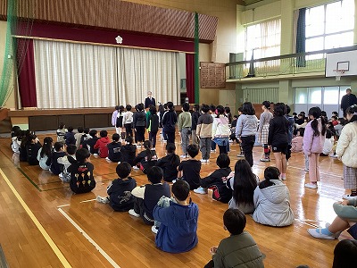 2限目に修了式と離任式を行いました。式に先立ち行われた表彰伝達のあと、修了式ではどの学年も背筋をピンと伸ばし、真剣な表情で進級承認を受けていました。校長先生からは、この一年間のがんばりを労う言葉が贈られました。続く離任式では、子どもたちも職員も感極まり、涙のお別れとなりました。去りゆく先生方の思いを胸に、子どもたちが来年度もさらなる成長を見せてくれることを願っています。