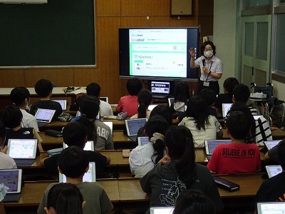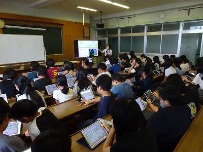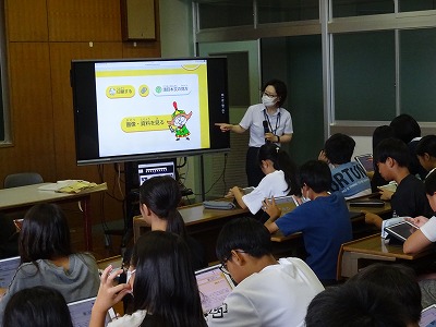 調べ学習で百科事典を使う方法を、5・6年生が教育委員会教育メディア課の方に教えてもらいました。iPad上のオンライン百科事典は、みんなで同時に、または調べたいときにすぐに情報にアクセスできるのが大きなメリットです。専門的な内容もわかりやすく解説されています。子どもたちは「コバンザメの頭上にある吸盤は、体のどの部分が変化したもの?」「缶詰と顕微鏡、先に発明されたのはどっち?」といった課題を調べていく中で、その便利さを実感しているようでした。