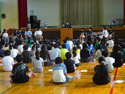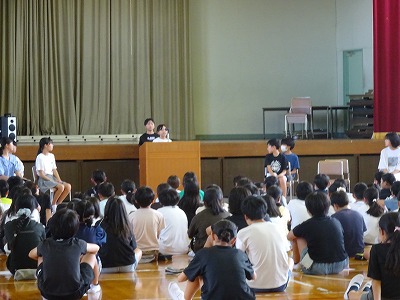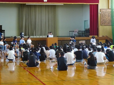 久しぶりのあいさつ運動でした。6月以来の実施となりましたが、まだまだ厳しい暑さが続く中でも、子どもたちとPTAとまちづくり協議会の方々が元気なあいさつを交わしてくれました。ご参加いただいたまちづくり協議会の方からは、「久しぶりに皆さんの元気な姿を見ることができてよかったです。明日も元気よくあいさつしましょう。」と、子どもたちへ温かいメッセージをいただきました。