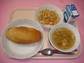 あげパン牛乳つなとたまごのいためものじゃがいもスープ