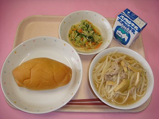 こがたコッペパン牛乳にくうどんごまドレッシングサラダ