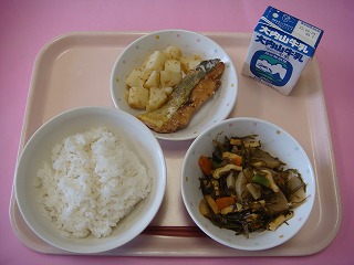 むぎごはん牛乳しいらのたつたあげこふきいものごまあえだいこんとこんぶのにもの