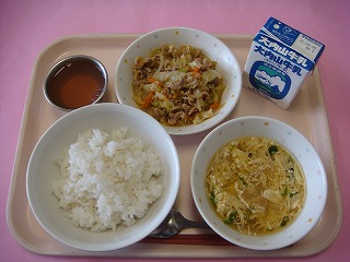 むぎごはん牛乳スタミナいためかきたまじるてづくりアセロラゼリー