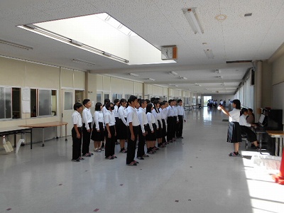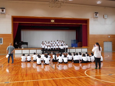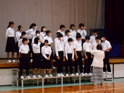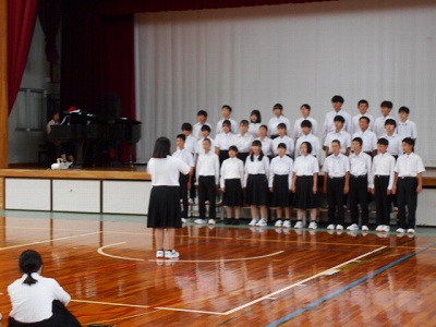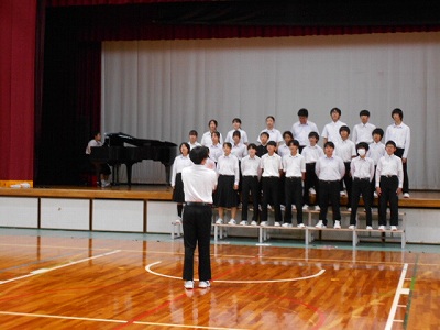 1年生はとにかく元気よく口を開けて歌うことを目標としています。2年生は去年に比べたら、ずいぶんきれいな合唱になってきました。3年生はやはりハーモニーが整ってきました。各学年の良さを発揮してください。