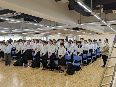 いよいよ文化祭当日です。午前の部はクラス合唱から始まって、英語スピーチ・人権作文発表・ピースメッセンジャー報告会と学習発表の色合いが強いアカデミックな内容ばかりです。合唱はどの学年・クラスも精一杯のパフォーマンスを発揮しましたが、その中でも3年生の両クラス合唱は、さすが!というものでした。
