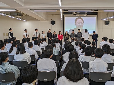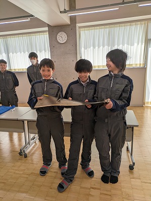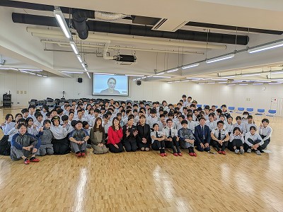 本日は1年生のキャリア教育の一環ととして、JALの主催する航空教室に参加しました。2年続けて開催していますが、今年度は桜浜中学校との合同開催ということで、伊勢市のマイクロバスを利用して、桜浜中学校で行われました。航空機を飛ばすために関わる様々な仕事についている人たちから、安全にお客様を乗せるために努力している話などを聞くことができました。様々な制服などの服装の着用体験もあり、短い時間でしたが充実した時間を過ごしました。