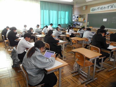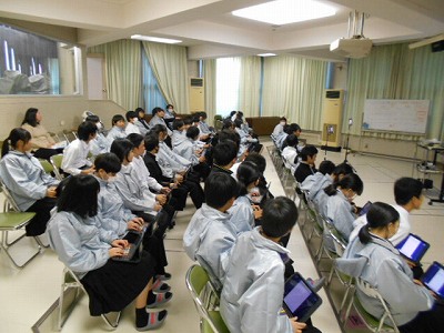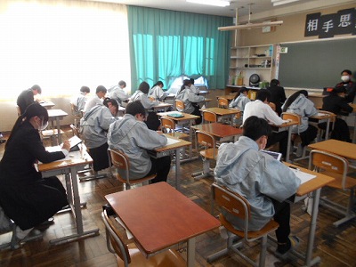 本日はPTA研修会の後、学校公開ということで、3・4限と午後の5・6限の授業を公開としました。延べ人数で50人以上の方々にご参加いただきました。誠にありがとうございます。保護者の方々に実際の生徒の様子を見ていただくことで、いろいろな気づきもあり、貴重なご意見もいただきました。今後に役立てたいと考えています。