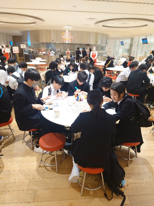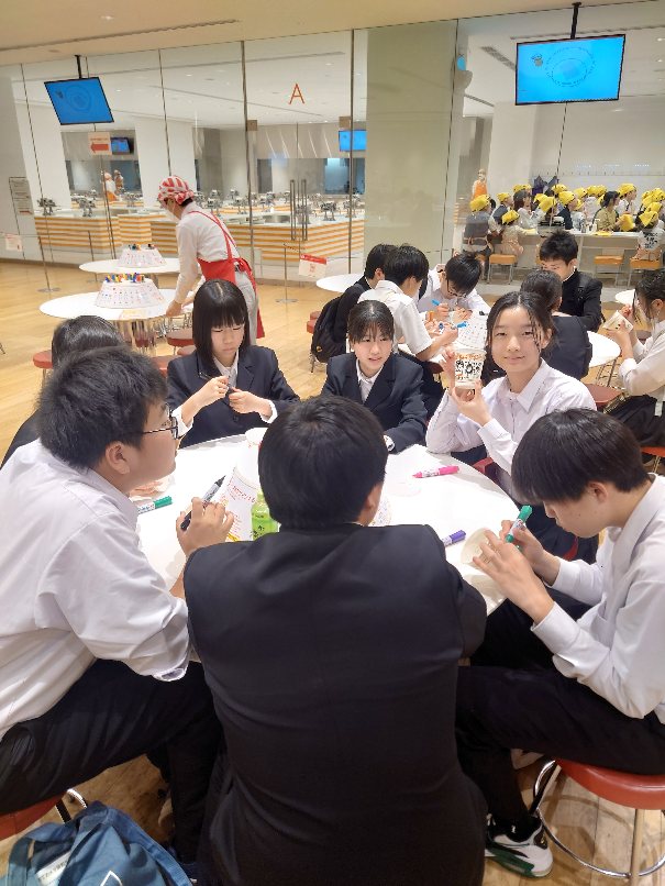 横浜について日清カップヌードルミュージアムに向かいました。オリジナルカップヌードルを作るため、まずはカップにイラストを描いていきます。