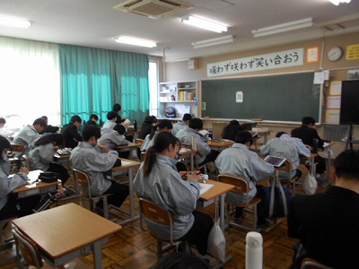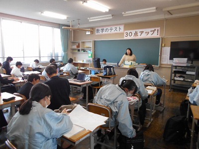 まもなく学年末テストがやってきます。1年生ではテストに向けて補充学習が行われました。各自がテストに向けて、わからないところに取り組むのですが、教頭先生まで参加して、充実した時間を過ごしていました。1年生で学習する内容は1年生のうちに押さえておくことが大切です。2年生になれば学習内容もさらに濃いものになります。この学年末テストは1年生の総まとめです。頑張ってください!