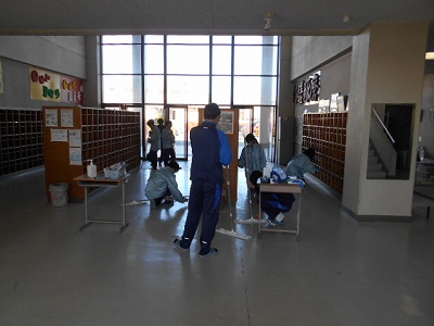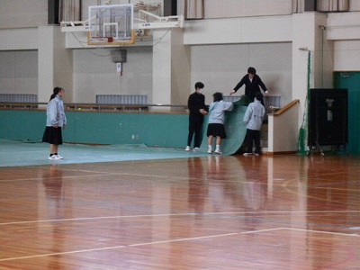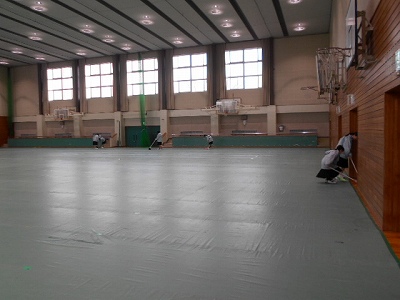いよいよ卒業式まで一週間となりました。本格的な練習の開始を前に、2年生が式場づくりに励んでくれました。朝からすでに陸上部やバスケ部の生徒がシートをひいてくれて、その後椅子を並べてくれました。この会場を作ることで、自分たちが次の学校のリーダーとなることを実感していくものなのです。