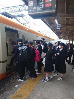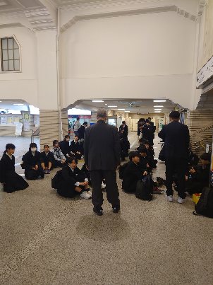 出発の見送りに、山本先生がお子さんと共に来てくれました。また、昨年度まで本校に勤めてみえた大西先生も見送りに来てくれました。結団式も無事終わり、これより乗車となります。