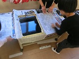 緊張しながらインクを版に塗布し、刷り紙を重ね