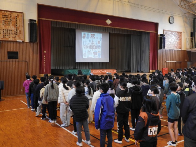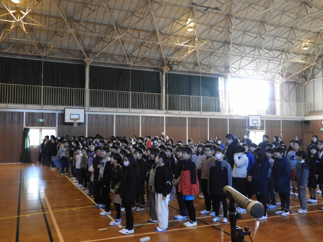 令和8年が始まりました。新しい年のスタートです。1限目に始業式を行いました。校歌を歌った後、校長より、「いじめのないみんなが安心して通える学校にしていきましょう」と話しました。また、「進級や卒業に向けて、1〜5年生は、残り50日あまり、6年生は48日、一日一日を大切に、本年度の学習や生活のまとめをしましょう」と話しました。