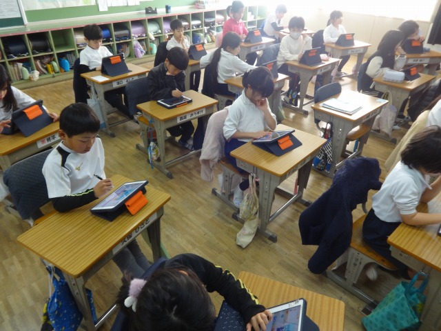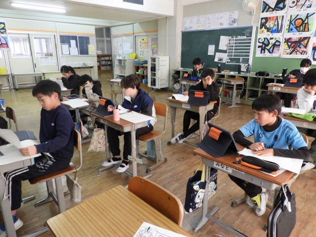 5年生がみえスタディ・チェックに取り組みました。タブレットを使って、国語・算数の2教科の問題を解き、質問に答えました。タブレットで問題を読み、タブレットに解答を入力する問題もあれば、紙の解答用紙に鉛筆で記入する問題もありました。子どもたちは、真剣に取り組んでいました。