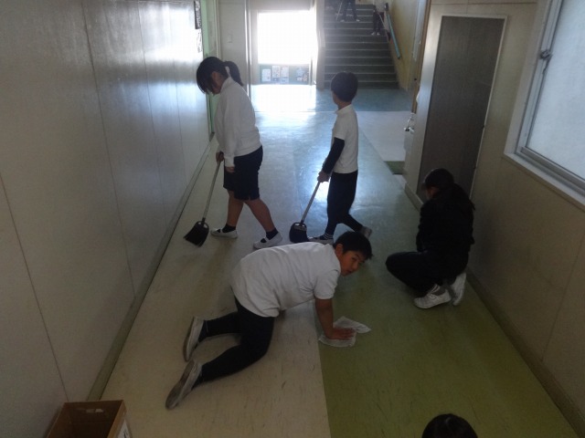 1年生から6年生までのたてわり班で、なかよし掃除が始まりました。上級生が下級生にしっかり教えながらみんな一生懸命そうじをしています。