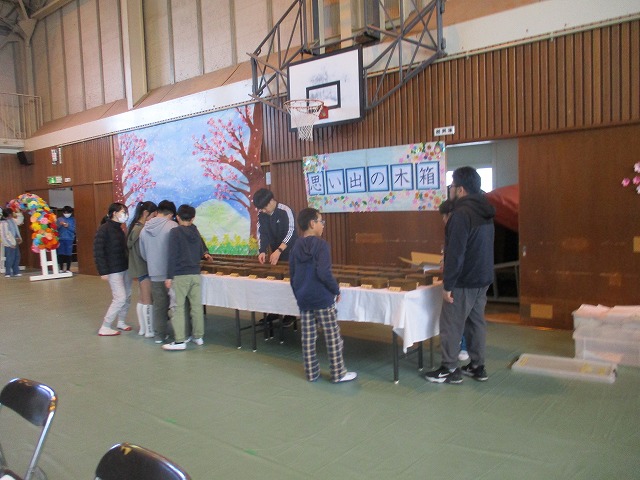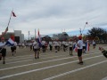 写真は、1年生の椅子運びを手伝う6年生、オープニングの鼓笛の演奏とバトンフラッグの演技、児童会長のあいさつです。