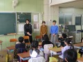 写真は左から読み聞かせをする2年生、話を聴く1年生、ピッポの会の方々です。