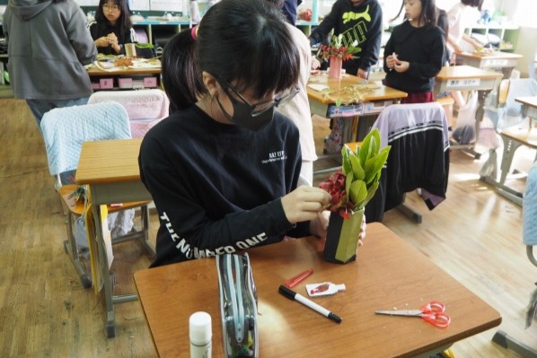 伊勢市女性団体連絡協議会の方々に来ていただき、園芸委員会の子どもたちとともに花壇に花を植えていただきました。花は、ビオラとノースポールです。子どもたちは慎重にポットから苗を出し、花壇に植え込んでいきました。女性団体のみなさま、冷たい風の吹く中をありがとうございました。大切に育てさせていただきます。