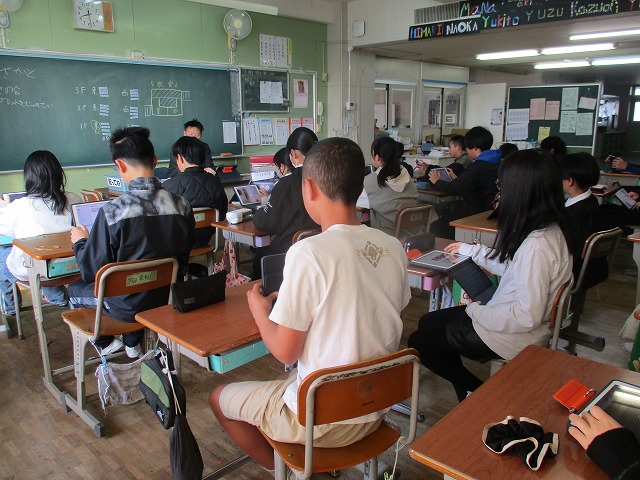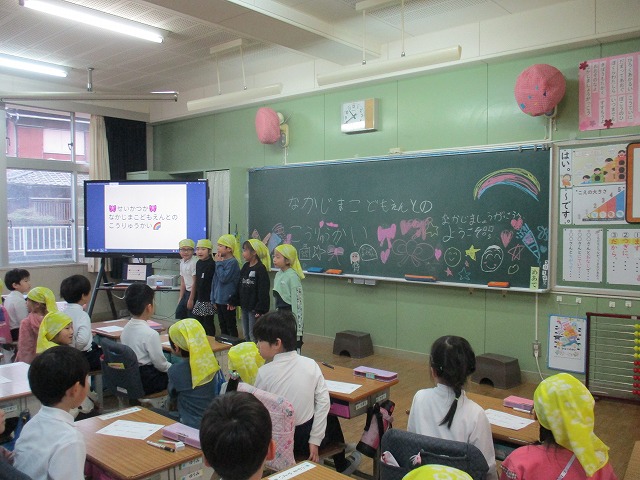 昨日は、玉城町立有田小学校の5年生とオンラインでつなぎ、英語で交流しました。はじめに、玉城町と伊勢市の名所や施設等の紹介し合いました。中島小は伊勢神宮やおかげ横丁、校区内のお店などを紹介しました(もちろん英語で)。次にグループに分かれ交流し、その後クイズをしました。有田小の5年生のみんなはとてもフレンドリーで、すぐに6年生の子どもたちも打ち解けていました。英語は難しいと少し抵抗感があった子どもたちも、有田小の子どもたちと会話するうち、活動の後半には、積極的に英語でコミュニケーションをとっていました。終わってから子どもたちに感想を聞いてみると、「英語で会話することが楽しい、コミュニケーションをとることが楽しい」と述べる子が多くいました。